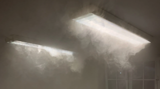 We created a fake i.e. suspended ceiling and installed a hazer inside of it, which directs its smoke through a smoke-detector. The smoke alarm on the fake ceiling was the only visible object in the room. Instead of reacting to smoke, the smoke-detector creates smoke, itself. The system is controlled by a timer, which lets the fog escape in short intervals. The work is centered around the problem of security and alertness as a premise for the destruction of freedom. The juxtaposition of freedom and security has been a narrative used frequently by the European media in the last years to concern the masses with the idea of total surveillance and global terrorism.