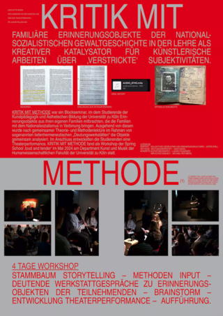 Präsentation meines Papers „Kritik mit Methode. Familiäre Erinnerungsobjekte der nationalsozialistischen Gewaltgeschichte in der Lehre als kreativer Katalysator für künstlerische Arbeiten über ‚verstrickte‘ Subjektivitäten". Poster zitierbar unter https://doi.org/10.21937/GS46-ZM26